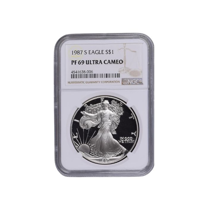You can acquire 1987-S 1 oz American Silver Eagle Proof coins graded by NGC as PF-69 at SD Bullion.