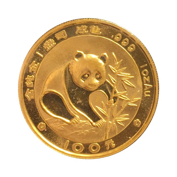 Only the 7th release in the Chinese Gold Panda Coin series, these 1988 1 oz Chinese Gold Panda Coins are one of the first releases under this series. As these coins are one of the few official gold bullion coins that feature annually changing designs, collectors and investors anxiously await each year’s release, wishing to purchase the newest designs before they run out of stock.Each of these gold coins is struck using 1 troy ounce of pure 0.999 gold. Moreover, the People’s Bank of China guarantees their 100-Yuan face value. Although this face value is nominal, the official backing of a sovereign government enhances investor confidence significantly.A depiction of the Hall of Prayer for Abundant Harvests in the Temple of Heaven in Beijing graces the obverse of these coins. Additionally, the year of issue ‘1988’ is imprinted below this elegant image.On the other hand, the reverse of this gold coin features 1988’s unique panda design. A panda is seen seated in a bamboo grove – grabbing one of the stems and pulling it towards itself.One troy ounce of pure gold, a design exclusive to 1988, and an official face value makes these coins an excellent vehicle for precious metals investments.