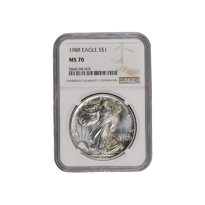 At SD Bullion, you can find 1988 1 oz American Silver Eagle Coins, certified as MS-70 and sealed in NGC slabs with its Brown Label.