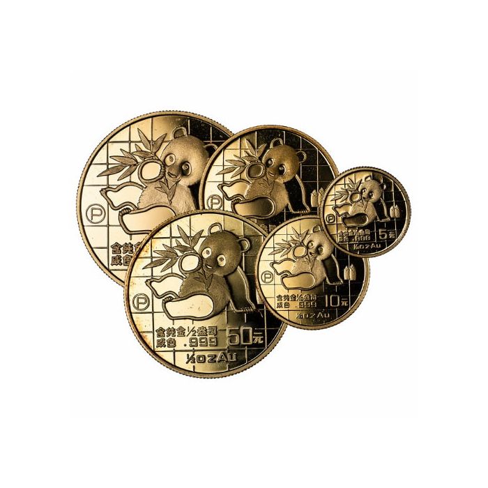 1989 Chinese Panda Gold Coin 5-Coin Proof Set in Capsules