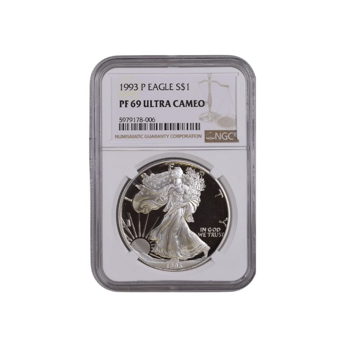 Today, SD Bullion offers 1993-P 1 oz American Silver Eagle Proof coins graded by NGC as PF-69 samples.