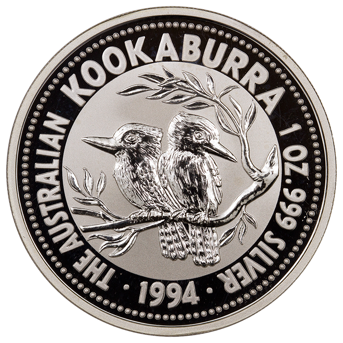 With a declared mintage of only 174,561 coins, these 1994 1 oz Australian Kookaburra Silver Coins are critical for collectors who hope to maintain full sets of the renowned Kookaburra Silver Coins.