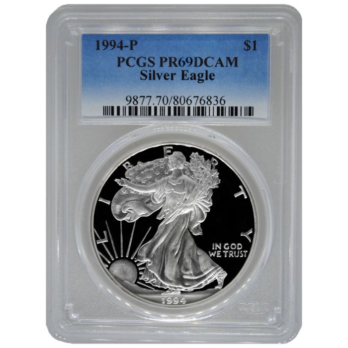 Today, SD Bullion has in stock 1994 1 oz American Silver Eagle Proof coins graded as PR-69 and sealed in PCGS slabs.