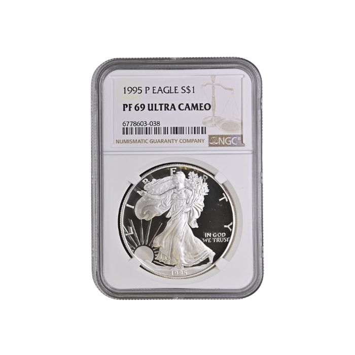 Today, SD Bullion offers 1995-P 1 oz American Silver Eagle Proof coins graded by NGC as PF-69 samples.