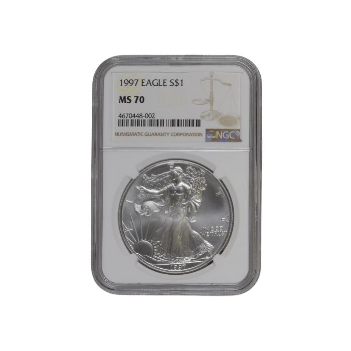 Today, SD Bullion offers 1997 1 oz American Silver Eagle Coins, certified as MS-70 and sealed in NGC slabs with its Brown Label.