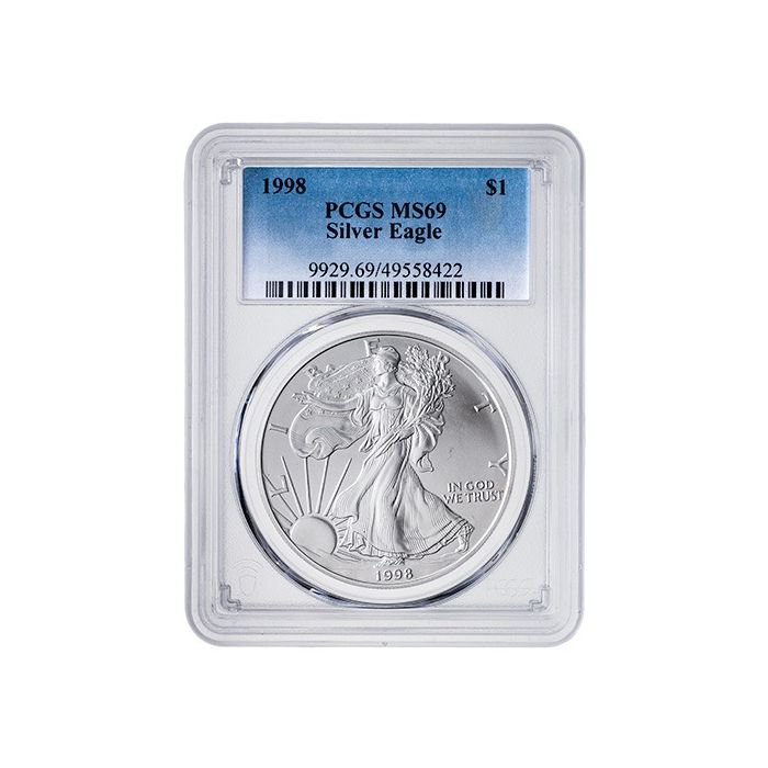 At SD Bullion, you can acquire 1998 1 oz American Silver Eagle Coins, certified as MS-69 samples and sealed in PCGS slabs with its Standard Label.