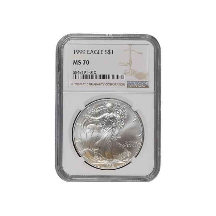 Today, SD Bullion offers 1999 1 oz American Silver Eagle Coins, certified as MS-70 and sealed in NGC slabs with its Brown Label.