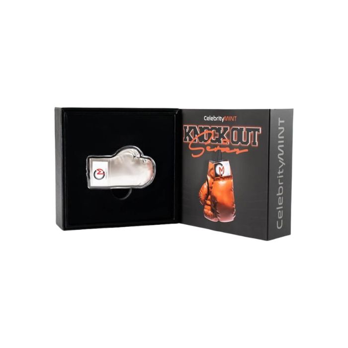 Step into the ring with the 2 oz Antique Silver Boxing Glove, the powerful debut release of the Knock Out Series by Celebrity Mint. Crafted from 2 troy ounces of .999 fine silver, this striking piece embodies the heart, determination, and indomitable spirit that define the sport of boxing. Finished with a rich antique polish, every contour, lace, and curve of the glove is brought to life in stunning detail — a true heavyweight in craftsmanship and symbolism alike.