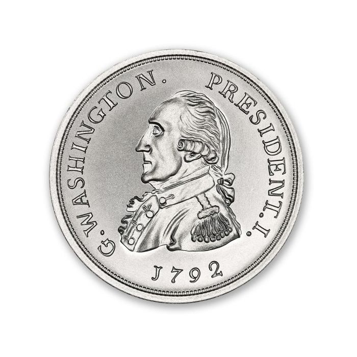 The obverse of the Getz Washington Replica Round features the left-facing profile of George Washington. To his left is “G. WASHINGTON” and to his right is “PRESIDENT I”. Also, the original planned year of production, 1792, is minted below his image.