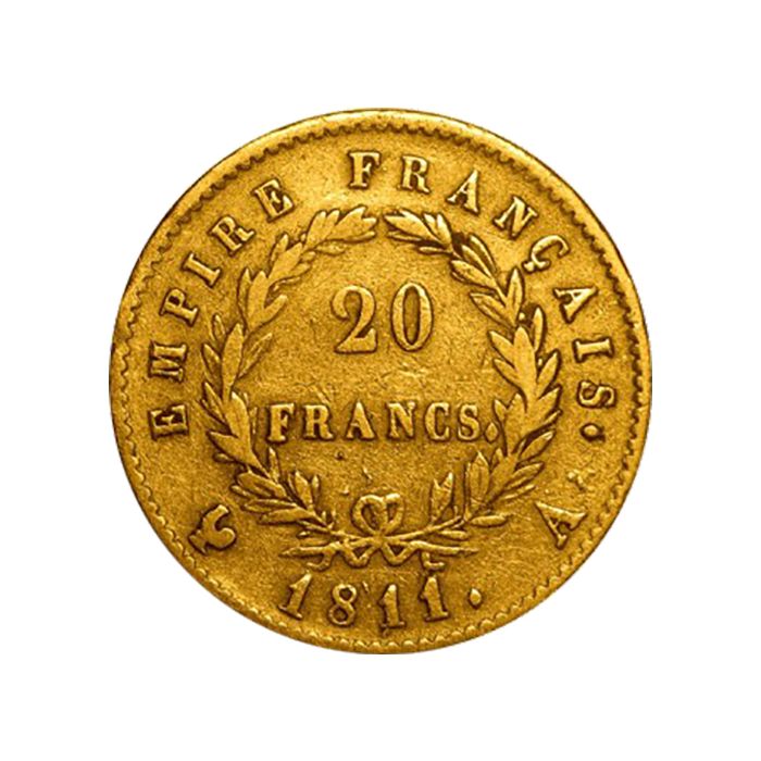 On the other hand, the coins' reverses display a wreath that encloses the face value of the coin in it (20 FRANCS). This is accompanied by the words 'Empire Francais' and its year of issue.