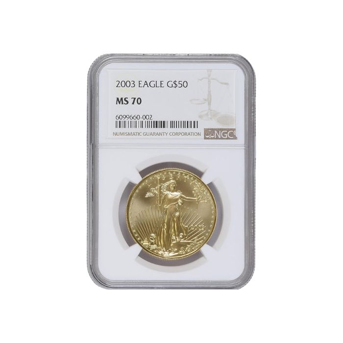 You can purchase 2003 1 oz American Gold Eagles Coins, sealed in NGC slabs and certified as MS-70 coins at SD Bullion.