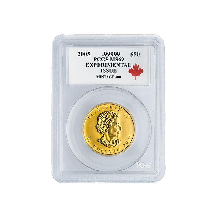 Today, you can acquire the 2005 1 oz .99999 Experimental Issue Gold Maple Leaf Coins, sealed and certified by PCGS as an MS-69 coin, at SD Bullion.