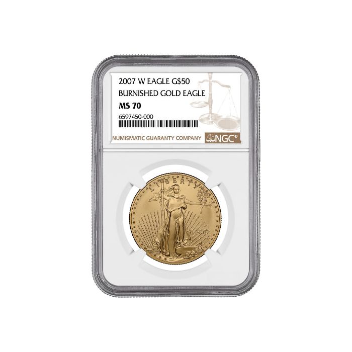 At SD Bullion, you can find 2007-W 1 oz Burnished American Gold Eagles, certified by NGC as MS-70 coins.