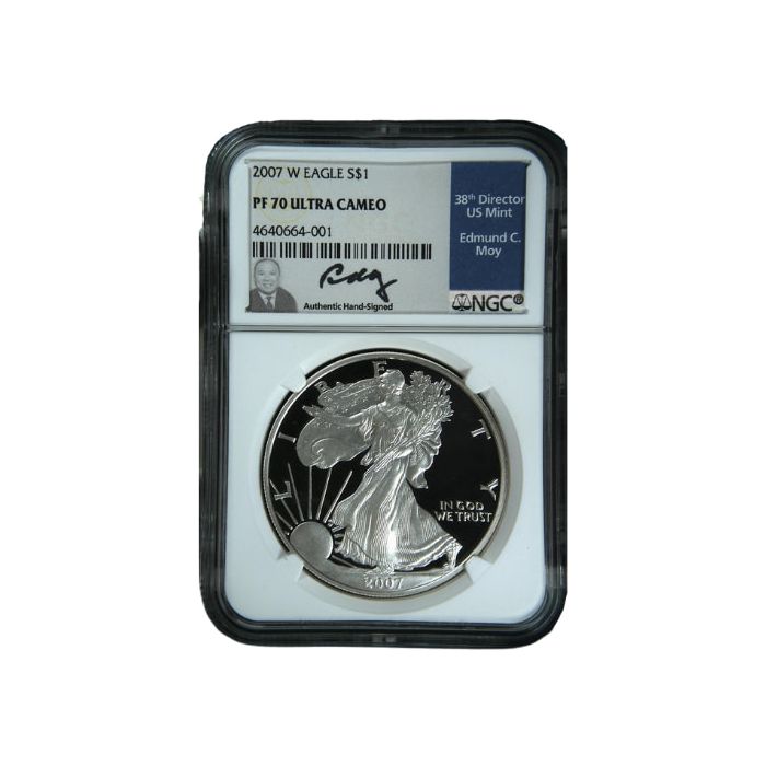 Buy 2007-W NGC PF-70 1 oz American Silver Eagle Proof Coin - Edmund C. Moy Label at SD Bullion
