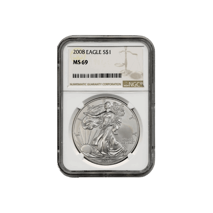 2008 NGC MS-69 American Silver Eagle Coin (Brown Label)