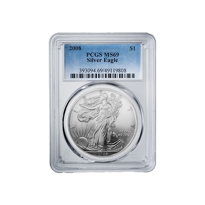 Today, you can purchase 2008 1 oz American Silver Eagle coins, sealed in PCGS slabs and graded as MS-69 samples at SD Bullion.