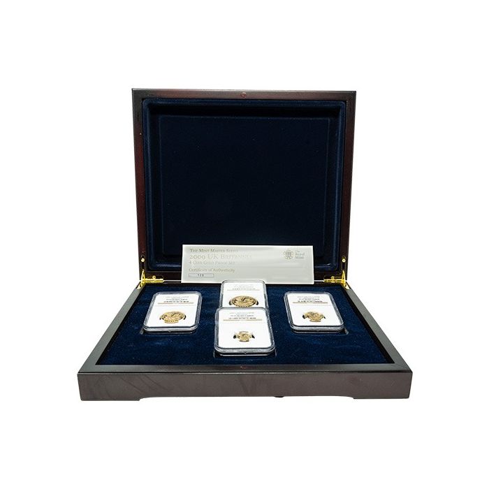 The Gold Britannia Mint Master Series contains four gold coins in proof finish: one-ounce, half-ounce, quarter-ounce, and decimal-ounce.