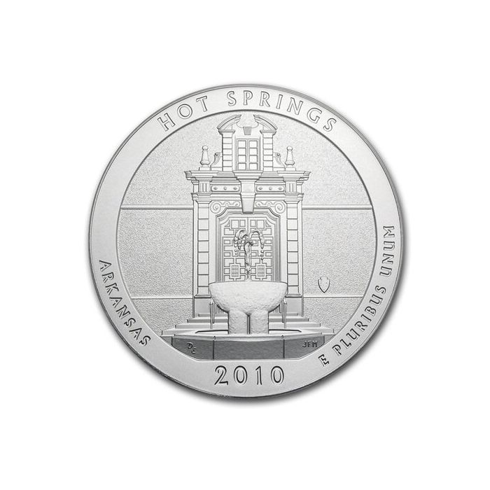 The 5 oz Hot Springs Arkansas National Park is the very first coin of the United States America the Beautiful Silver Bullion Coinâ„¢ Program, and is part of the very first year (2010) of the US Mint's ATB series!