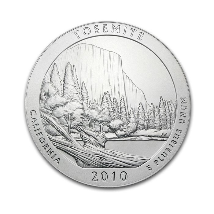 The 5 oz Yosemite National Park is the 3rd coin of the United States America the Beautiful Silver Bullion Coin™ Program, and is part of the very first year (2010) of the US Mint's ATB series.