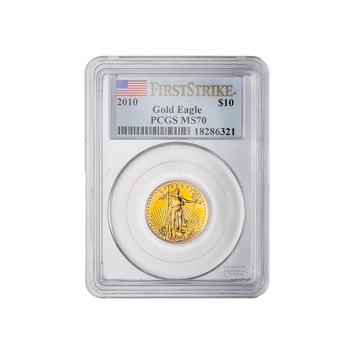 At SD Bullion, you can find 2010 1/4 oz American Gold Eagle Coins sealed and graded as MS-70 First Strikes coins by PCGS.