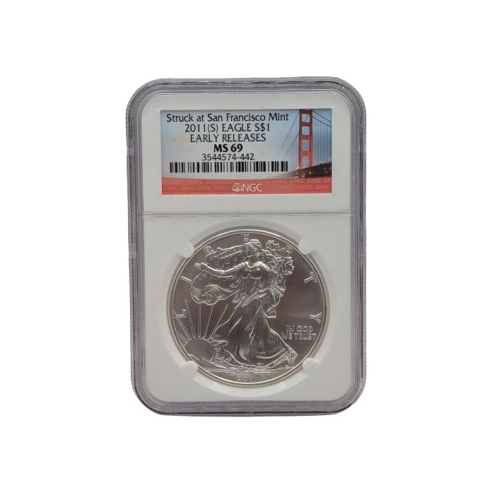 Today, SD Bullion offers 2011-(S) 1 oz American Silver Eagle Coins purchased from the US Mint within 30 days of their official release. They are certified as MS-69 and sealed in the NGC San Francisco Label.
