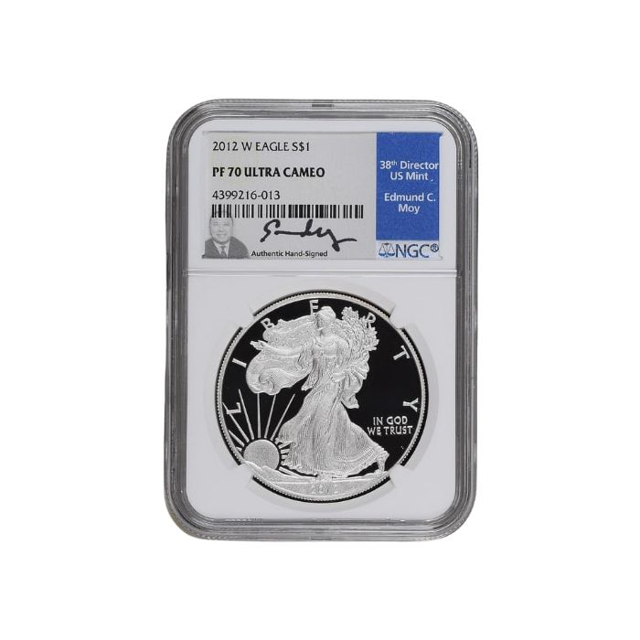 Purchase the 2012-W NGC PF-70 1 oz American Silver Eagle Proof Coin with Edmund C. Moy Label online from SD Bullion.
