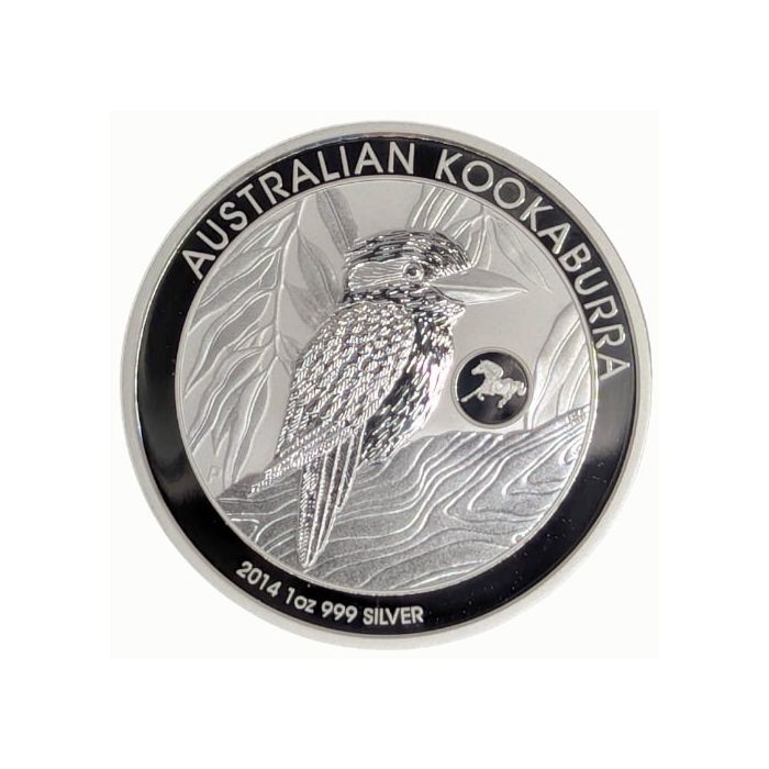 The inscription “AUSTRALIAN KOOKABURRA” arches above the central image, while the bottom of the design includes the coin’s specifications: “2014 1 oz 999 SILVER.”
