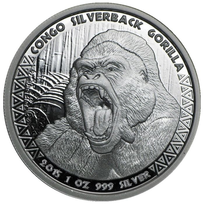2015 Congo Silverback Gorilla Silver Coin 1 oz