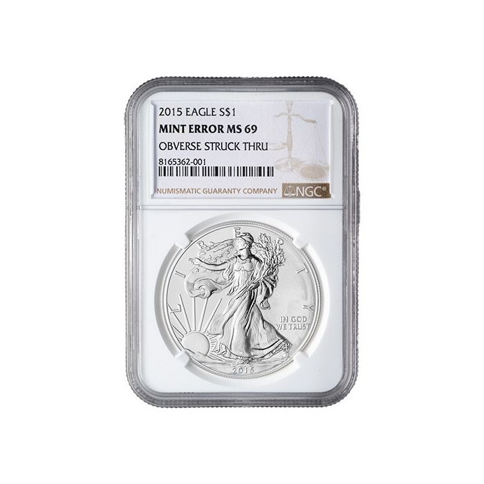 Buy 2015 NGC MS-69 Mint Error Obverse Struck Thru 1 oz American Silver Eagle Coins at SD Bullion