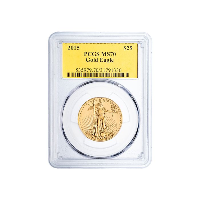 Add the 2015 PCGS MS-70 1/2 oz American Gold Eagle Coins sealed with an exclusive Gold Foil Label to your cart and shop online from SD Bullion.