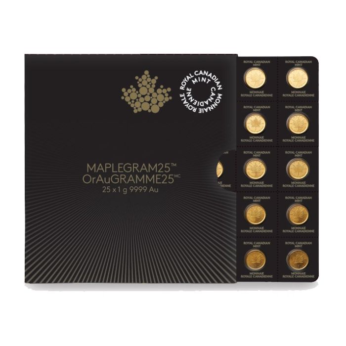 The Maplegram25 Coin Sheet is a one-of-a-kind commodity for any trader, and it's an excellent choice for individuals looking to buy smaller amounts of gold bullion while still keeping the qualities of state-minted coins. These coins can be separated into 25 individual gram pieces, making this even more appealing.