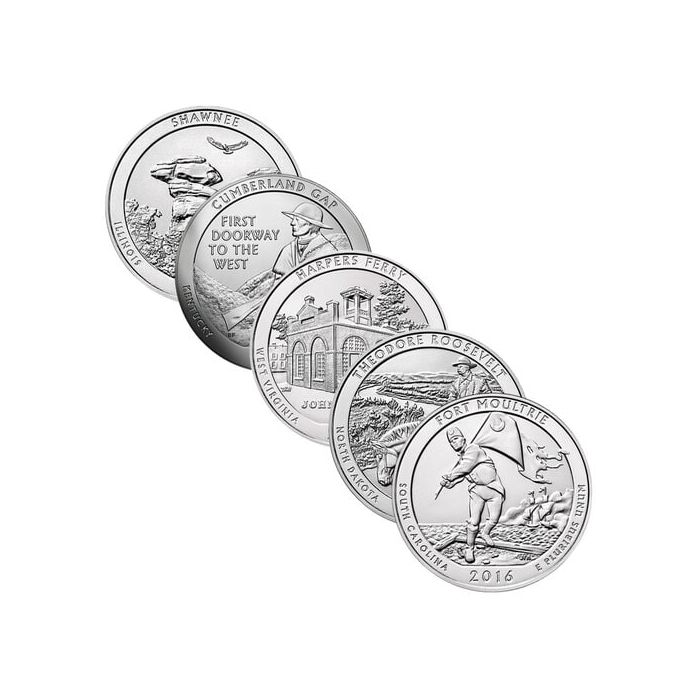 As all these 2016 America the Beautiful coins are assigned face values of $0.25 (quarter dollars), their obverses feature the familiar image of George Washington. The reverses of these coins make each release under this program unique. It features a famous historical/culturally-significant site, national park, or even a critical historical scene, celebrating the rich heritage of the featured state. These 2016 ATB coins are essential coins for any American coin collections, especially ATB collections. Their substantial 5 troy ounces (each) of pure silver weight also make them excellent investment assets in addition to being collectible coins.