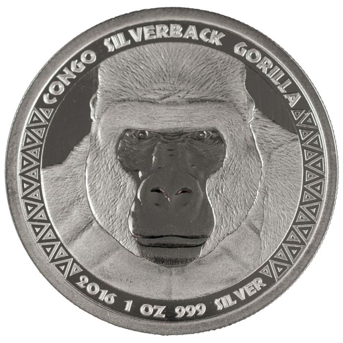 2016 Congo Silverback Gorilla Silver Coin 1 oz