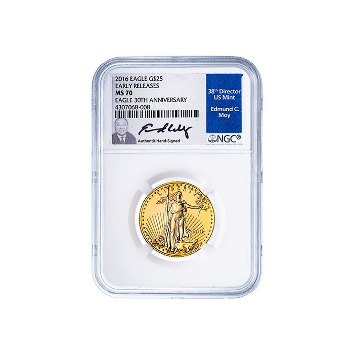 Today, you can purchase at SD Bullion 2016 1/2 oz American Gold Eagle Coins graded as MS-70 Early Releases coins and sealed in NGC Exclusive Edmund C. Moy Label.