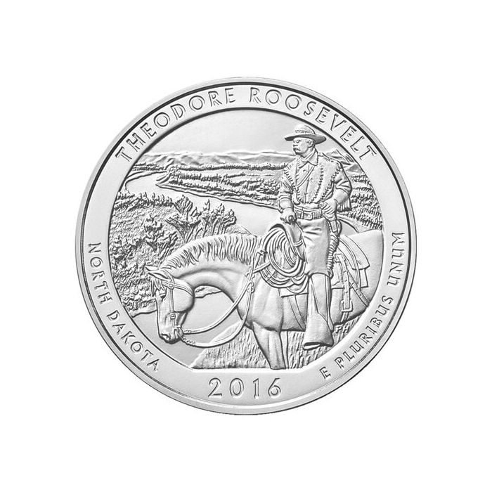 2016 Theodore Roosevelt ATB 5 oz Burnished Silver Coin - America The Beautiful