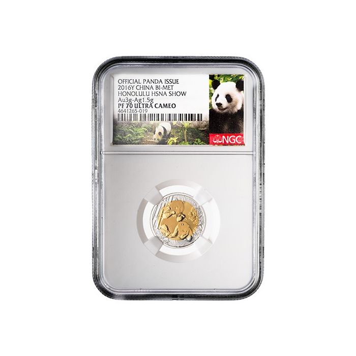 Today, you can acquire the 2016-Y 3-gram Chinese Bi-Met Honolulu HSNA Show Gold-Silver Coins at SD Bullion, graded as PF-70 coins by NGC.