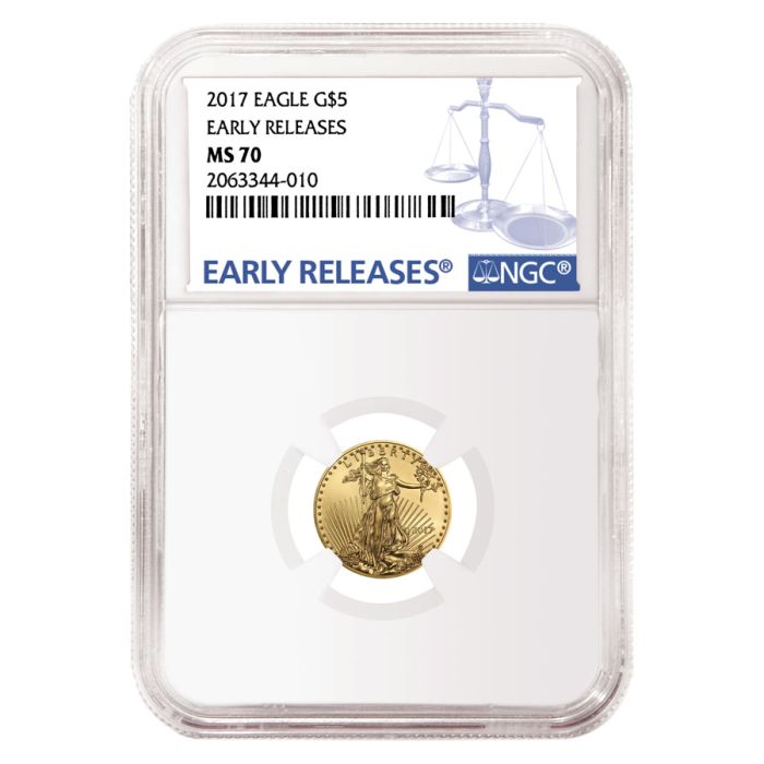 Every coin is struck using 22-karat gold (0.9167 purity), weighing 1/10 troy ounces. In addition to their MS-70 grade, they are certified as ‘Early Releases,’ guaranteeing that these coins were struck during the first 30 days of the release of 2017 American Gold Eagles at the US Mint.
