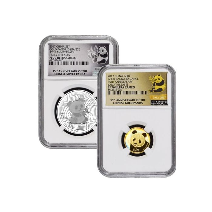 This set of proof coins from the 35th anniversary celebratory release by the Chinese Mint provides an easy way to collect both special-issue coins. These 2017 Silver and Gold Panda Proof Coins have limited mintages of 200,000 and 50,000 respectively. With three different gold and silver coins marking the occasion, the Chinese Mint wants to celebrate the year 2017 as a special year.