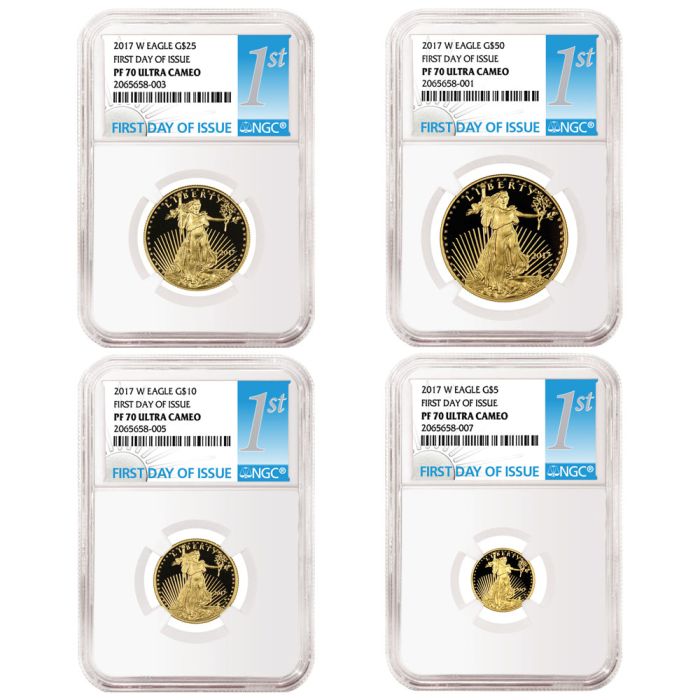 2017 Proof Gold American Eagle NGC First Day Of Issue PF-70 Ultra Cameo Set For Sale