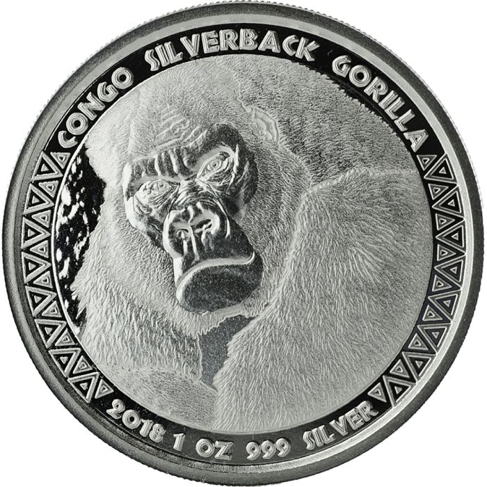 2018 Congo Silverback Gorilla Silver Coin 1 oz