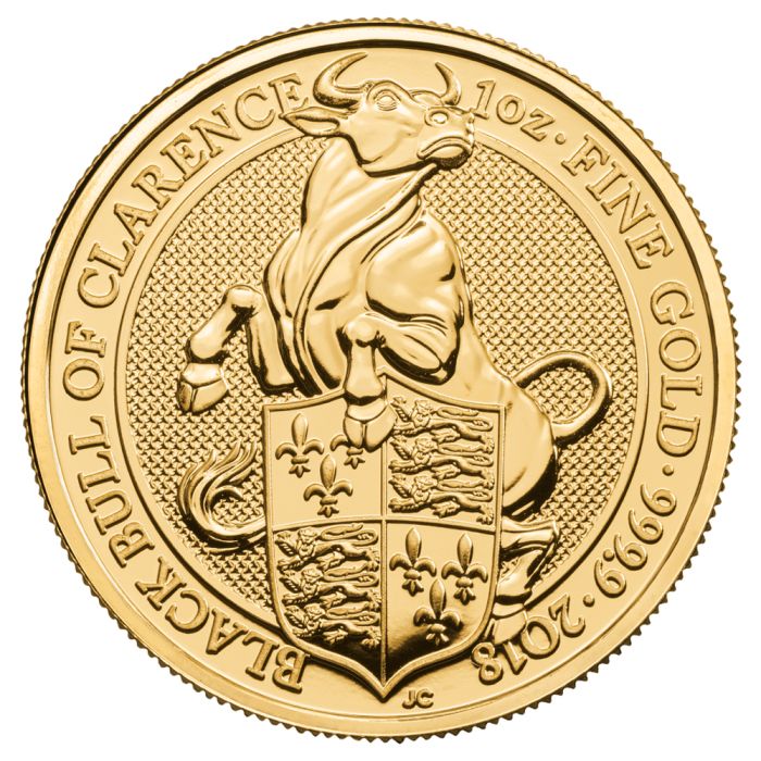 The Royal Mint has released the 5th coin in the Queen’s Beast series of coins, honoring the Black Bull of Clarence with an incredible portrayal of the mythical beast. These 2018 1 oz Queen’s Beast Gold Coins feature marvelous designs and artwork – making it another exceptional coin to release under the Queen’s Beast coin program. The Royal Mint launched this coin program in 2016 to celebrate Queen Elizabeth II’s famous coronation ceremony. In fact, the ten stone effigies of the mythical beasts present at the ceremony constitute the primary inspiration for every release in the Queen’s Beast series. Each of these coins is struck using 1 troy ounce of 0.9999 fine gold. Moreover, they bear face values of £100 (GBP) each, and the United Kingdom Government recognizes these coins as legal tender. These 2018 1 oz Queen’s Beast Black Bull of Clarence Gold Coins are essential to any coin collector who hopes to collect the complete Queen’s Beast series of coins. Furthermore, their 0.9999 pure gold content makes them valuable investment assets to expand and diversify precious metals portfolios too. Diameter: 32.69 mmQueen's Beast Full Release Schedule1st: The Lion (2016)2nd: The Griffin (2017)3rd: The Red Dragon of Wales (2017)4th: The Unicorn of Scotland (2018)5th: The Black Bull of Clarence (2018)Future Release: The Yale of Beaufort (20__)Future Release: The White Lion of Mortimer (20__)Future Release: The White Greyhound of Richmond (20__)Future Release: The Falcon of the Plantagenet(20__)Future Release: The White Horse of Hanover (20__)