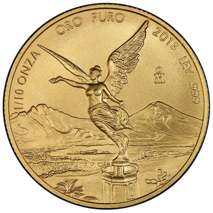 Mexican Gold Libertads are official bullion gold coins from Mexico. Since the Mexican Mint first launched them in 1981, every annual release has become a globally anticipated event with both collectors and investors waiting to grab them before stocks run dry. These particular 2018 1/10 oz Mexican Gold Libertads are among the lighter fractional-weight gold coins issued by the Mexican Mint this year.
