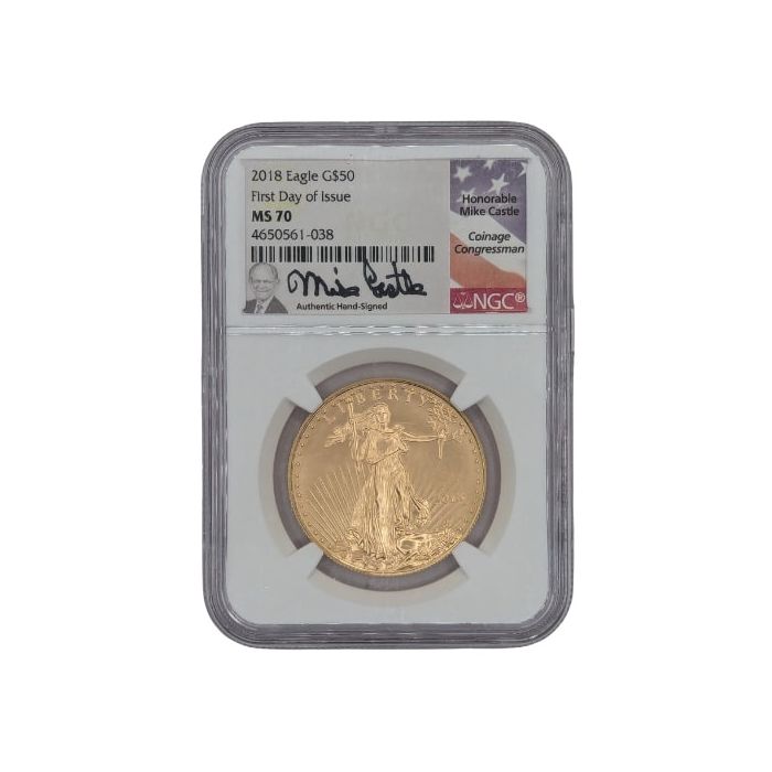 Purchase the 2018 NGC MS-70 First Day of Issue 1 oz American Gold Eagle Coin - Mike Castle Signature Label online, 24/7, from SD Bullion.