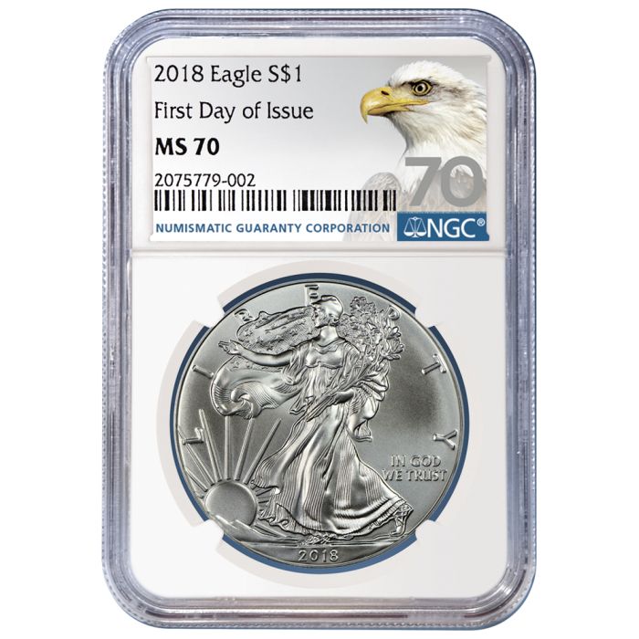 The Numismatic Guaranty Corporation (NGC) has a long history of accurately grading precious metals coins, spanning several decades – and understandably, its grades inspire trust among all types of buyers. The ‘First Day of Issue’ designations are given to coins that were received by NGC within one day of release – assuring buyers that these 2018 American Silver Eagles are among the very first struck this year.