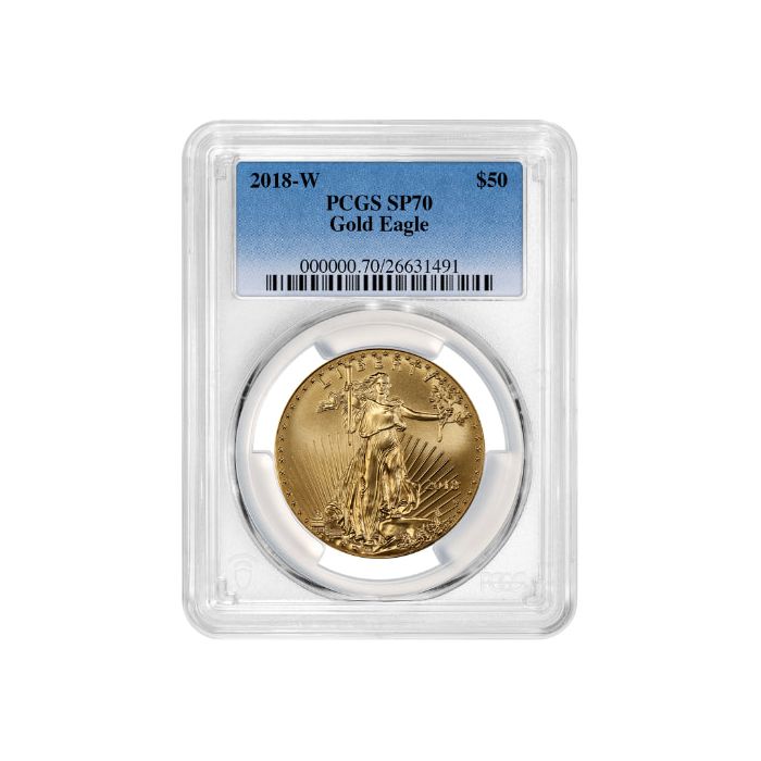 Purchase the 2018-W PCGS SP-70 First Strikes 1 oz American Gold Eagle Burnished Coin - Gold Foil Label online 24/7 from SD Bullion.