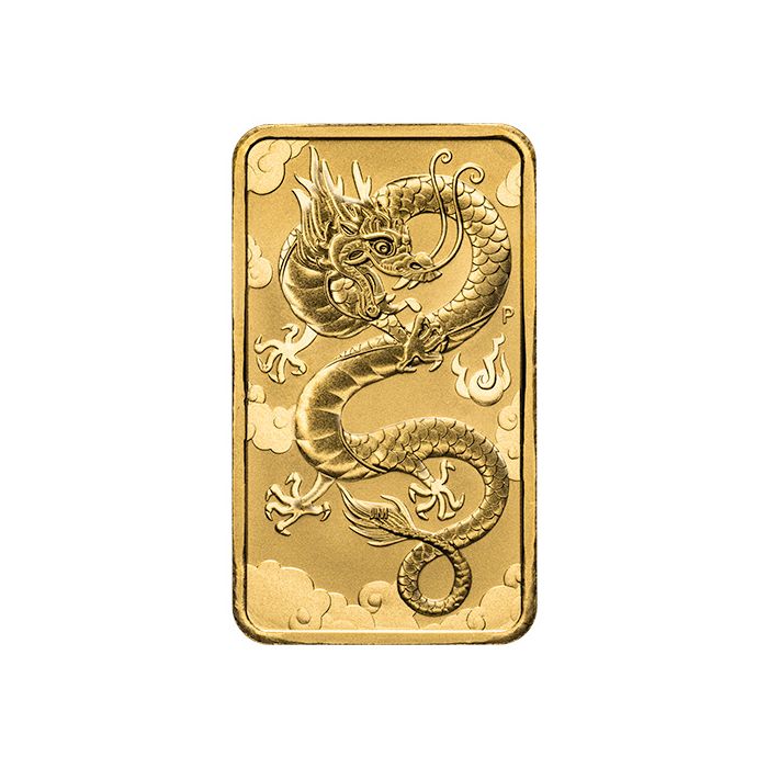 Seize the opportunity to increase your gold bullion holdings with the 2019 1 oz Dragon Rectangular Gold Coin.
