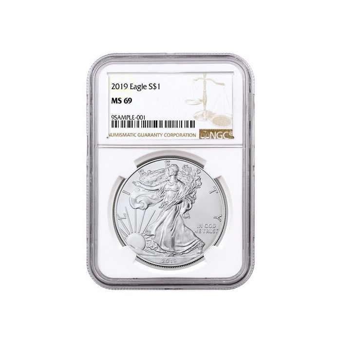 Like all prior American Silver Eagles, Silver Eagles are minted at the West Point Mint, Philadelphia Mint, or San Francisco Mint. NGC assigns these 2019 releases a grade of MS-69. This grade means an almost perfect coin–i.e. no noticeable imperfections to the naked eye.