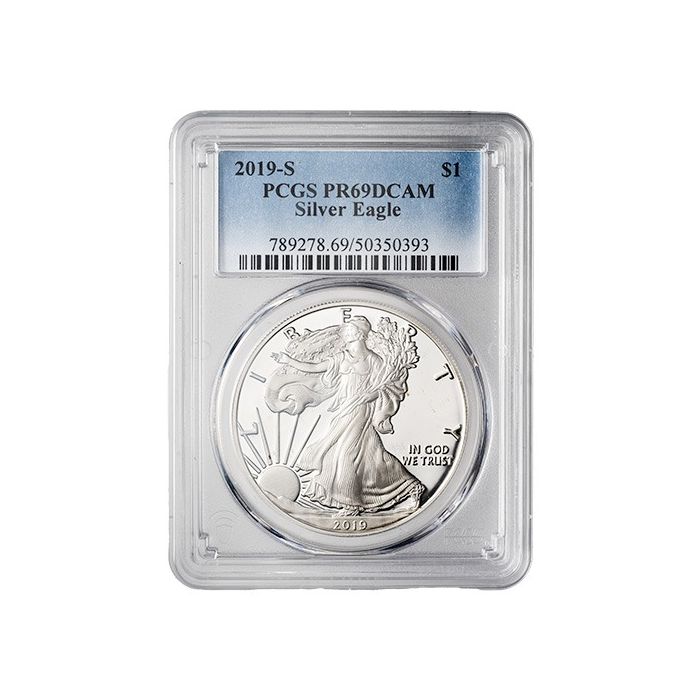 Purchase the 2019-S PCGS PR-69 1 oz American Silver Eagle Proof Coin online 24/7 from SD Bullion.