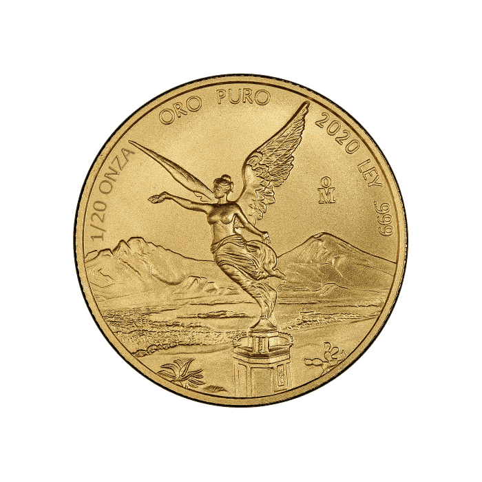 The 2020 1/20 oz Gold Mexican Libertad coins contain 0.999 pure gold in the sum of 1/20 troy ounces. They are also backed by the Banco de Mexico, Mexico's central bank.