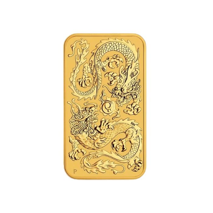 These rectangularly shaped coins contain 1 Troy oz of 99.99% pure gold, hold face value, and have legal tender status. In addition, they are imprinted with a stunning Dragon design.
